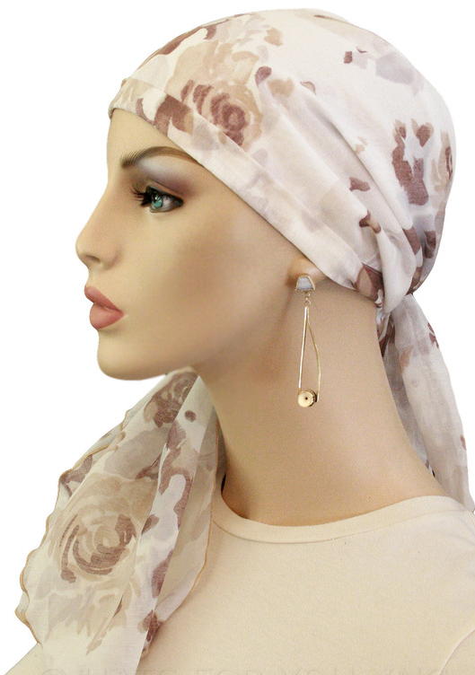 【おしゃれな医療用帽子・ケア帽子】裏地は頭皮にやさしいオーガニックコットン100% 肩までカバー・ロング丈・スカーフ・キャップ ヒョウ柄(S768)/ アメリカ製 (S768)