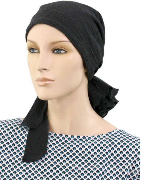 【おしゃれな医療用帽子・ケア帽子】裏地は頭皮にやさしい柔らかなオーガニックコットン100% ショート丈・スカーフ・キャップ ブラック・ガーゼ(S719)/ アメリカ直輸入
