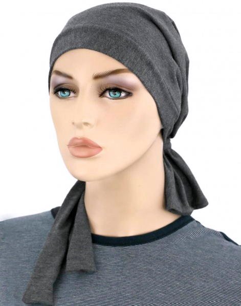 【おしゃれな医療用帽子・ケア帽子】裏地は頭皮にやさしい柔らかなオーガニックコットン100% ショート丈・スカーフ・キャップ グレー(S720)/ アメリカ直輸入