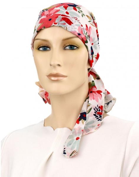 【おしゃれな医療用帽子・ケア帽子】裏地は頭皮にやさしい柔らかなオーガニックコットン100% ショート丈・スカーフ・キャップ フラワー柄(S721)/ アメリカ直輸入