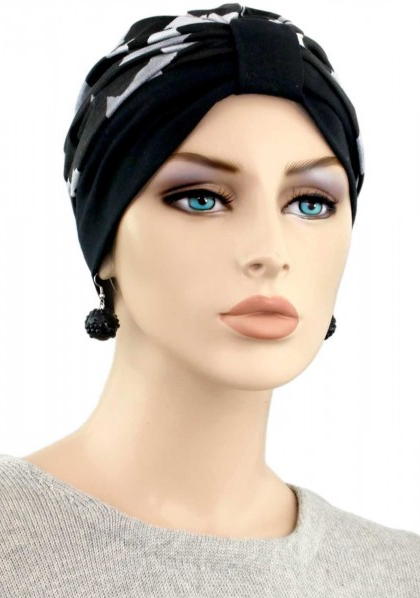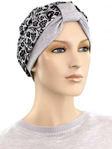 【おしゃれな医療用帽子・ケア帽子】ターバン・キャップ ブラック×グレー(S745)/アメリカ製
