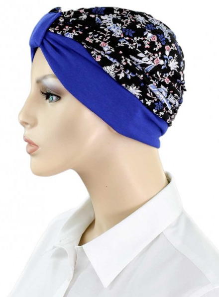 【おしゃれな医療用帽子・ケア帽子】ターバン・キャップ ネイビー×フラワー柄(S747)/アメリカ製