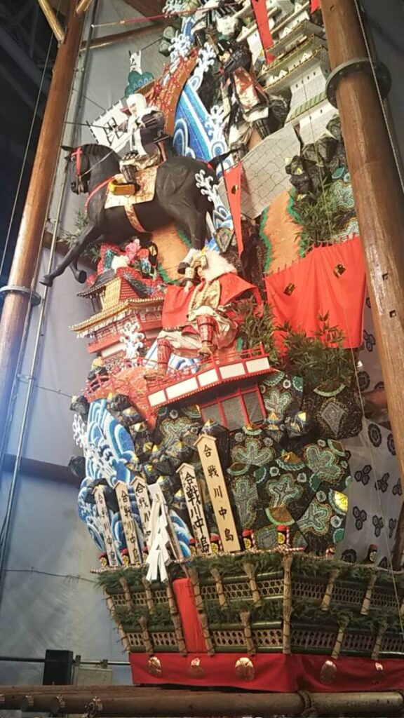 これらは、「飾り山」と呼ばれていて 歴史上の人物と、流行の人物や人気のキャラクターが正面と裏面に飾られます。高さもあるので圧巻です。