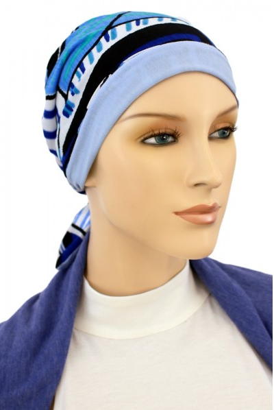 【おしゃれな医療用帽子・ケア帽子】ミニリボン付きリバーシブル・キャップ ブルー系・マルチカラー(S554)/アメリカ製