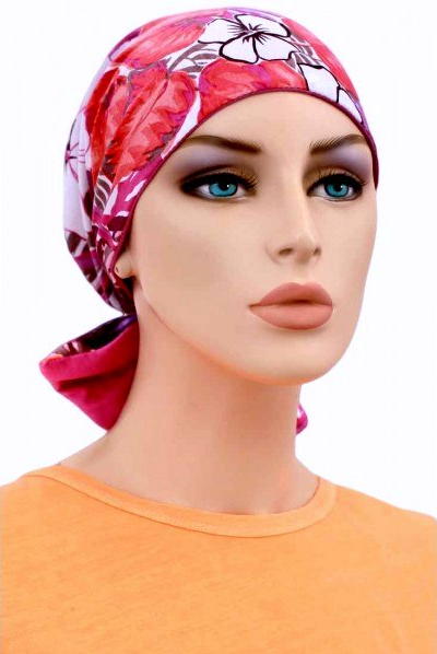 【おしゃれな医療用帽子・ケア帽子】ミニリボン付きリバーシブル・キャップ ピンク系&#10005;フラワー柄(S555)/アメリカ製