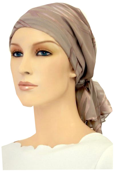 【おしゃれな医療用帽子・ケア帽子】イタリア製シルク100% ショート丈・スカーフ・キャップ  サンドベージュ(S659)光沢あり/アメリカ製