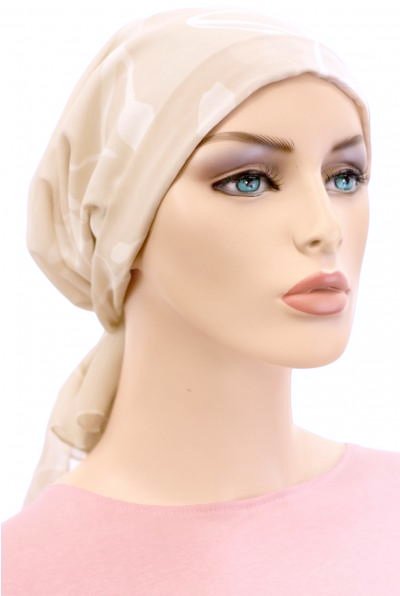 【おしゃれな医療用帽子・ケア帽子】イタリア製シルク100% ショート丈・スカーフ・キャップ  ベージュ(S551)/アメリカ製