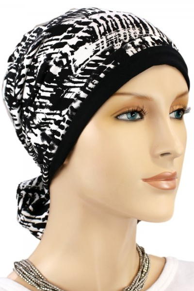 【おしゃれな医療用帽子・ケア帽子】ミニリボン付きリバーシブル・キャップ ブラック×ホワイト(S627)/アメリカ製