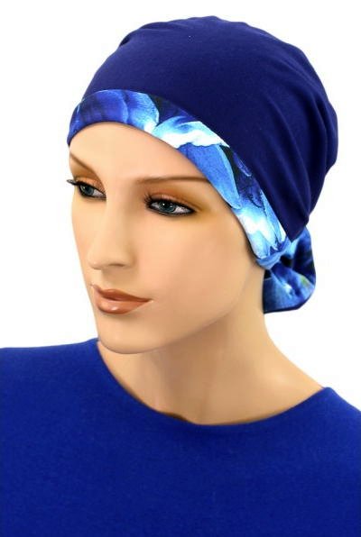 【おしゃれな医療用帽子・ケア帽子】ミニリボン付きリバーシブル・キャップ ブルーガーベラ×ロイヤルブルー(S628)/アメリカ製